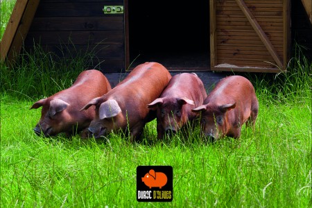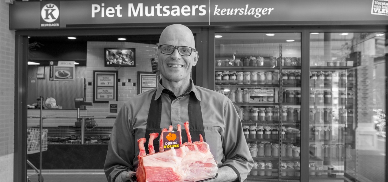 Daarom zijn we nu een stap verder gegaan. Wij verkopen nu al ons varkensvlees van het ras DUROC D'OLIVES. Dit ras word kleinschalig gemest en uitsluitend voor de specialistische ambachtelijke slager. De varkens zijn bruinachtig tot rood van kleur en zijn wereldwijd gekend door de malsheid van het vlees, dit ook mede door de lichte "marmering" in het vlees. Het voer wat het Duroc d'olives varken krijgt bestaad enkel natuurlijke grondstoffen zoals tarwe, gerst, mais en soja waaraan olijfolie is toegevoegd. Het gebuik van de olijfolie in het varkensvoer zorgt niet alleen voor de specifieke smaak maar verhoogd ook de gezonde onverzadigde vetzuren in het vlees.